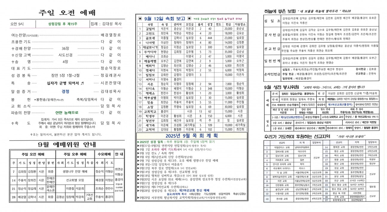 2025년 9월 21일 교회주보 본문 2025년 9월 21일 교회주보2025년 9월 21일 교회주보 하나님을 만나고 돌아가는 은혜의 시간 되기를 기도합니다. 연천교회 조회 222회 2025-09-20 09:31 목록 댓글목록 이전글 2025냔 9월 28일 교회주보 25.09.27 다음글 2025년 9월 14일 교회주보 25.09.13