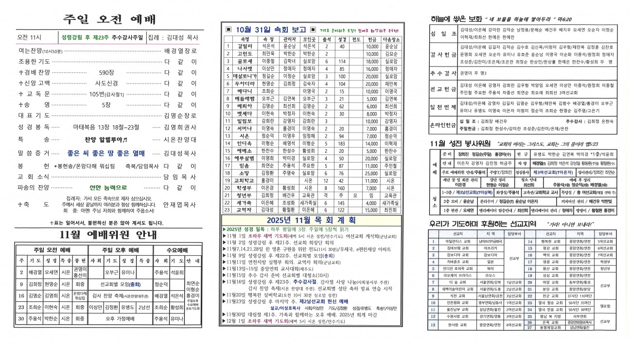 2025년 11월 16일 교회주보 본문 2025년 11월 16일 교회주보2025년 11월 16일 교회주보 샬롬 연천교회 조회 79회 2025-11-15 10:38 목록 댓글목록 이전글 2025년 11월 23일 교회주보 25.11.22 다음글 2025년 11월 9일 교회주보 25.11.08