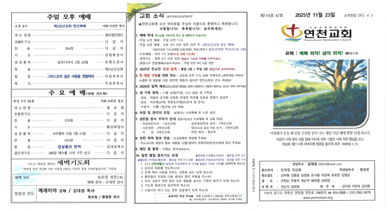 2025년 11월 23일 교회주보 본문 2025년 11월 23일 교회주보2025년 11월 23일 교회주보 샬롬 연천교회 조회 45회 2025-11-22 09:55 목록 댓글목록 이전글 2025년 11월 30일 교회주보 25.11.29 다음글 2025년 11월 16일 교회주보 25.11.15