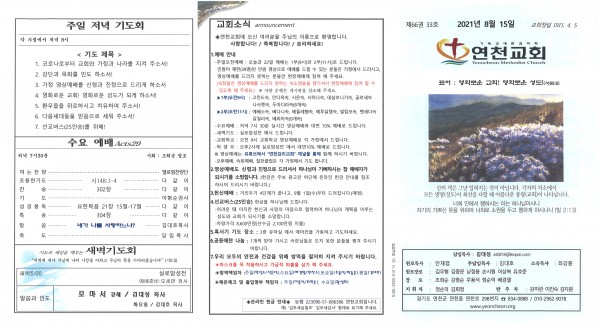 2021년 8월 15일 교회소식