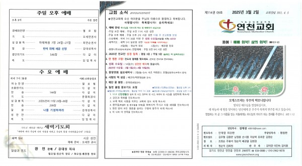 2025년 3월 2일 교회주보
