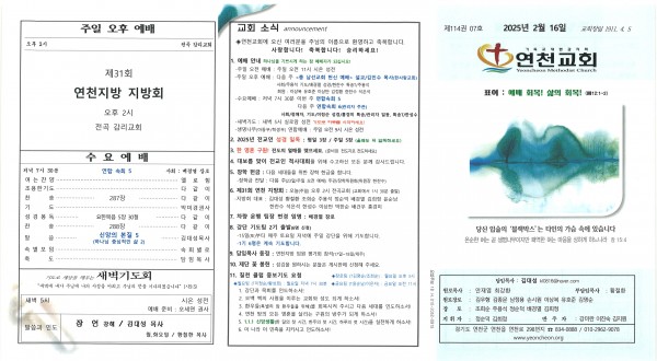 2025년 2월 16일 교회주보